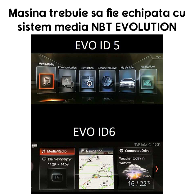Pentru a putea fi montata interfata , masina trebuie sa aiba AUX activat. In cazul masinilor cu camere 360 din fabrica , acestea vor fi afisate , dar nu va fi posibila schimbarea modului de vizualizare.