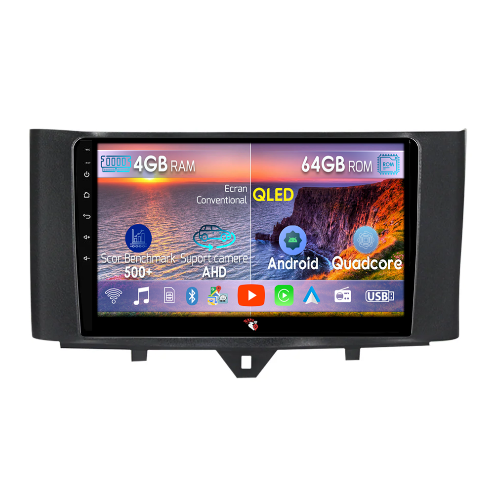 Mercedes-Benz Navigatie dedicata Smart Fortwo 2011-2015, 4GB RAM 64GB ROM, Quad Core, Display 9" QLED 1K, Carplay, Android 14, Bluetooth, Magazin Play, Suport Camere AHD
