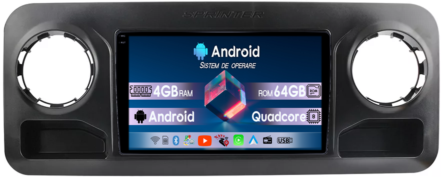 Mercedes-Benz Navigatie dedicata Mercedes Benz Sprinter 2019, 4GB RAM 64GB ROM, Quad Core, Display 9" QLED Carplay, Android 14, Bluetooth, Magazin Play, Suport Camere AHD