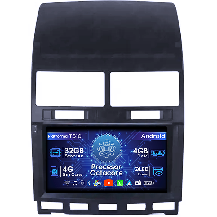 Volkswagen Navigatie dedicata Volkswagen Touareg 2002-2012, 4GB RAM 32GB ROM, Octacore, Android 14, Display QLED 9", DSP, Carplay&Android Auto, SIM 4G, Bluetooth, Ventilator Activ