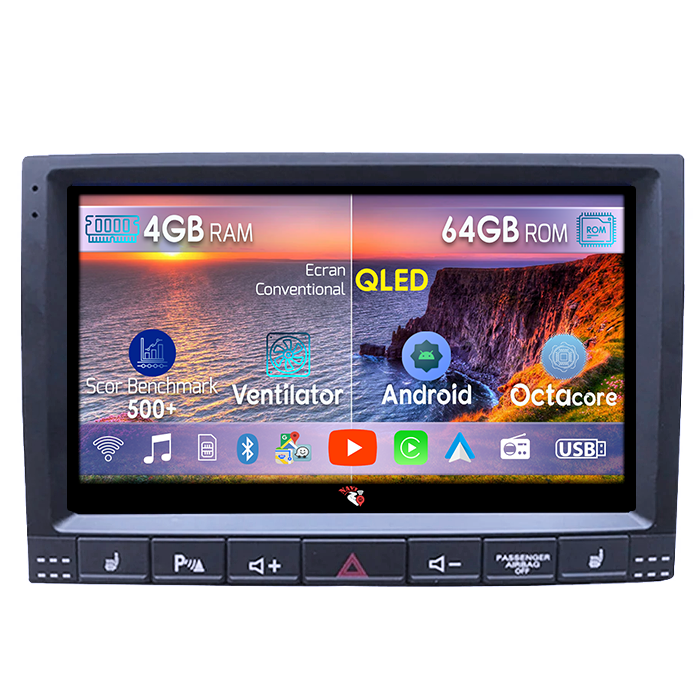 Volkswagen Navigatie dedicata VW Touareg 2002-2012, 4GB RAM 64GB ROM, Octacore, Android 14, Display QLED 9", DSP, Carplay, Android Auto, Internet, Youtube, Waze, WIFI, Bluetooth