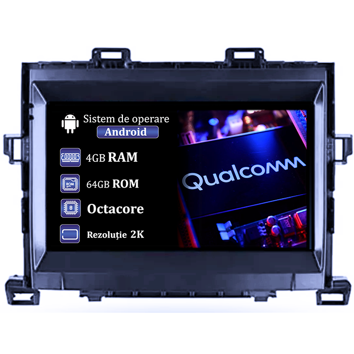 Toyota Navigatie dedicata Toyota Alphard 2008-2014, 4GB RAM 64GB ROM, Procesor Qualcomm Octacore, Android 14, Rezolutie 2K, Display QLED 9", DSP, Carplay&Android Auto, SIM 4G