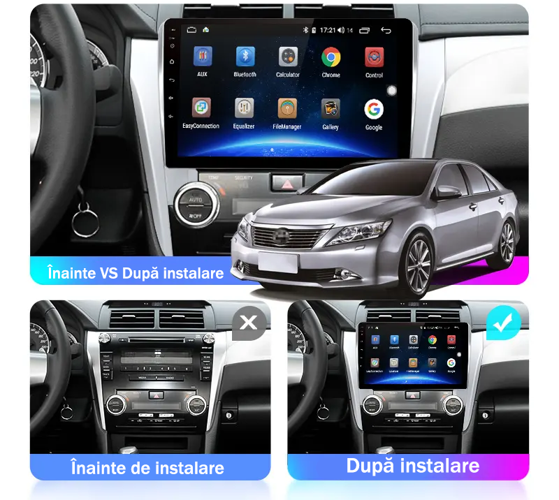 Toyota Navigatie dedicata Toyota Camry 2011-2014, 4GB RAM 64GB ROM, Octacore, Android 14, Display QLED 1K 9", Carplay&Android Auto, SIM 4G, Ventilator Activ