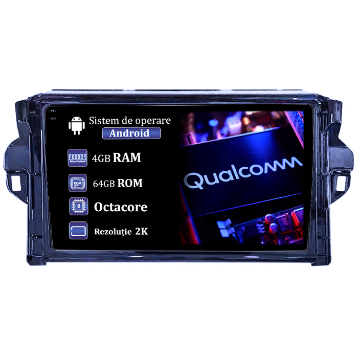 Toyota Navigatie dedicata Toyota Fortuner 2015-2020, 4GB RAM 64GB ROM, Procesor Qualcomm Octacore, Android 14, Rezolutie 2K, Display QLED 9", DSP, Carplay&Android Auto, SIM 4G