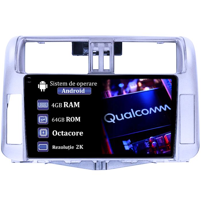 Navigatie dedicata Toyota Prado 150 2009-2013, 4GB RAM 64GB ROM, Procesor Qualcomm Octacore, Android 14, Rezolutie 2K, Display QLED 9", DSP, Carplay&Android Auto, SIM 4G