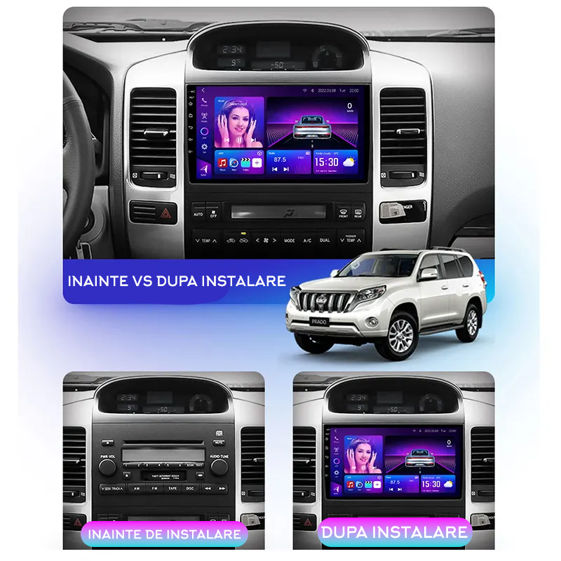 Toyota Navigatie dedicata Toyota Prado 2004-2009, 4GB RAM 64GB ROM, Procesor Qualcomm Octacore, Android 14, Rezolutie 2K, Display QLED 9", DSP, Carplay&Android Auto, SIM 4G