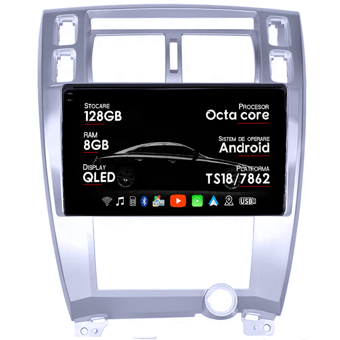 Navigatie dedicata Hyundai Tucson 1 2004-2009, 8GB RAM 128GB ROM, Octacore, Platforma TS18, Android 14, Display QLED 9", Suporta camera 360", DSP, Carplay&Android Auto, SIM 4G, Ventilator Activ