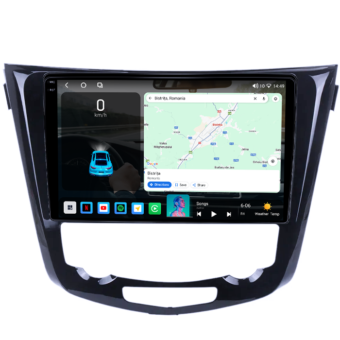 Nissan Navigatie dedicata Nissan Qashqai X-trail 2013, 4GB RAM 64GB ROM, Procesor Qualcomm Octacore, Android 14, Rezolutie 2K, Display QLED 9", DSP, Carplay&Android Auto, SIM 4G