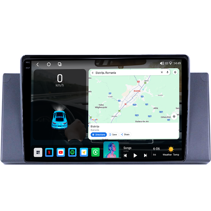 Compatibil cu Bmw X5 E53 anii 1999-2006. Pentru autoturismele cu navigatie din fabrica nu o sa mai fie afisate informatiile car info, insa o sa fie preluate comenzile volan si celelalte functii iar masinile cu navigatie din fabrica necesita un cablaj special ( cablaj prelungire 6 metri, intrucat autoturismul are alimentarea radio in portbagaj